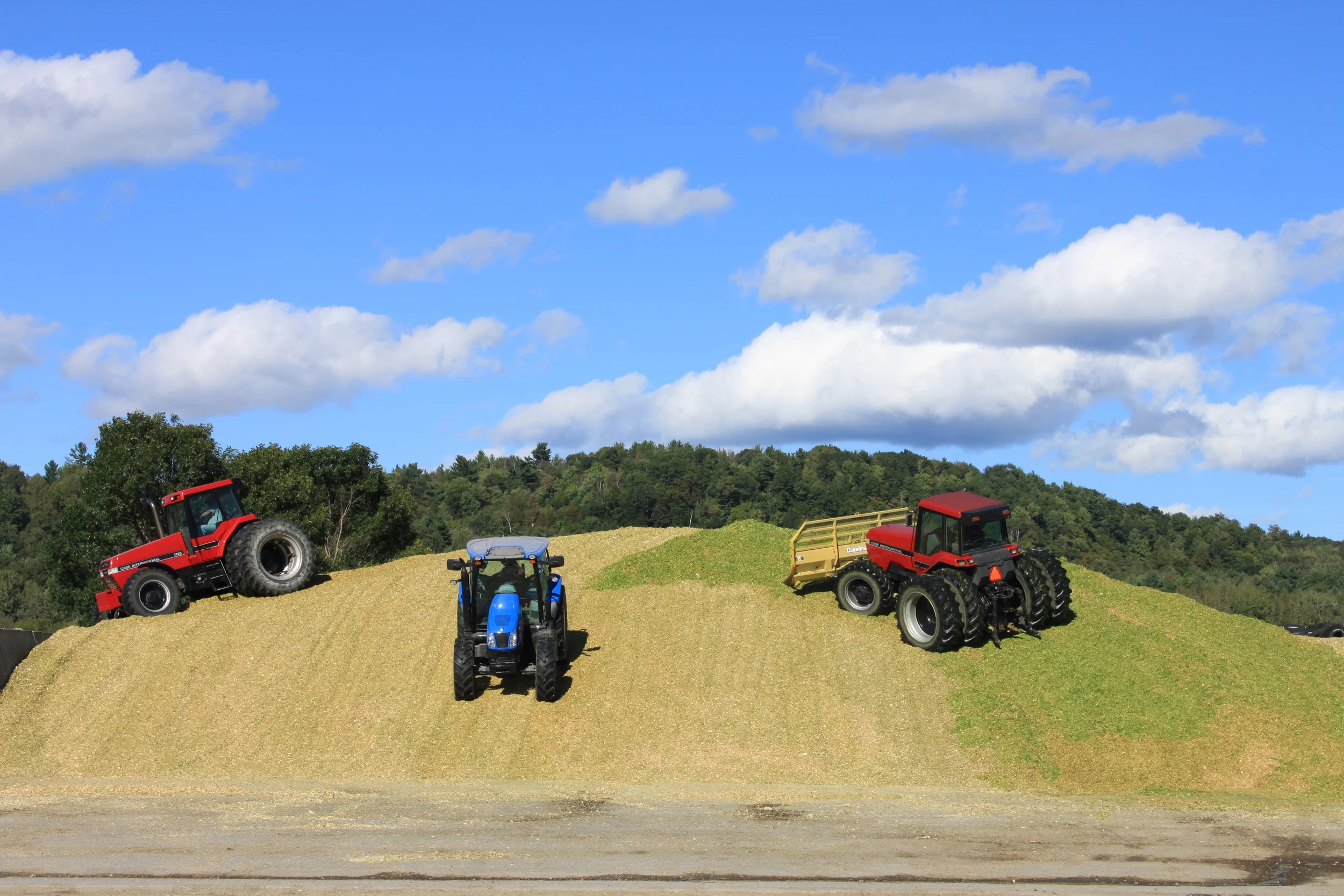 After we harvest our crops, we pile it into bunker silos, where it can be stored to feed our cows throughout the year.